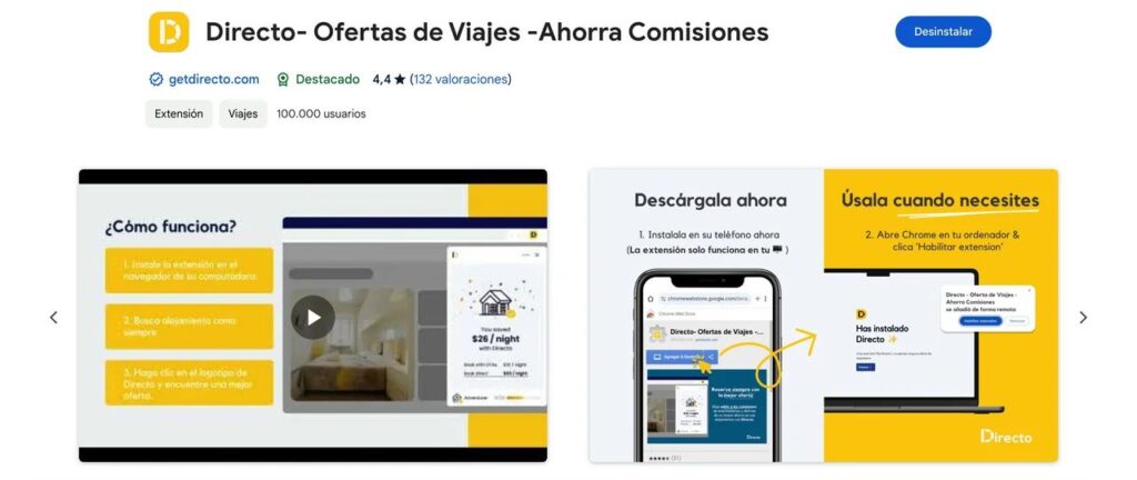 La manera de evitar pagar comisión en Booking y Airbnb es sencilla: solamente se debe instalar en el navegador Google Chrome la extensión “Directo – Ofertas de Viajes – Ahorra comisiones”, tanto en la computadora como en el celular. De esta manera, se pueden evitar sobreprecios en los hoteles.